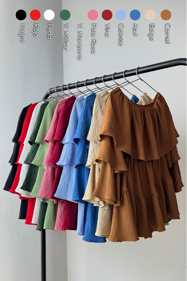Enterizo de corte A en capas con escote off-shoulder que sienta bien a todas las siluetas, armoniza y entalla lindo.