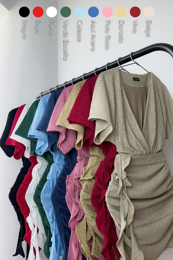 En la falda lleva una drapeado para equilibrar la figura, visiblemente dará volumen a las caderas para armonizar aun mas la figura pero el detalle mas importante es que este corte hace que te sientas cómoda sin dejar de ser elegante.