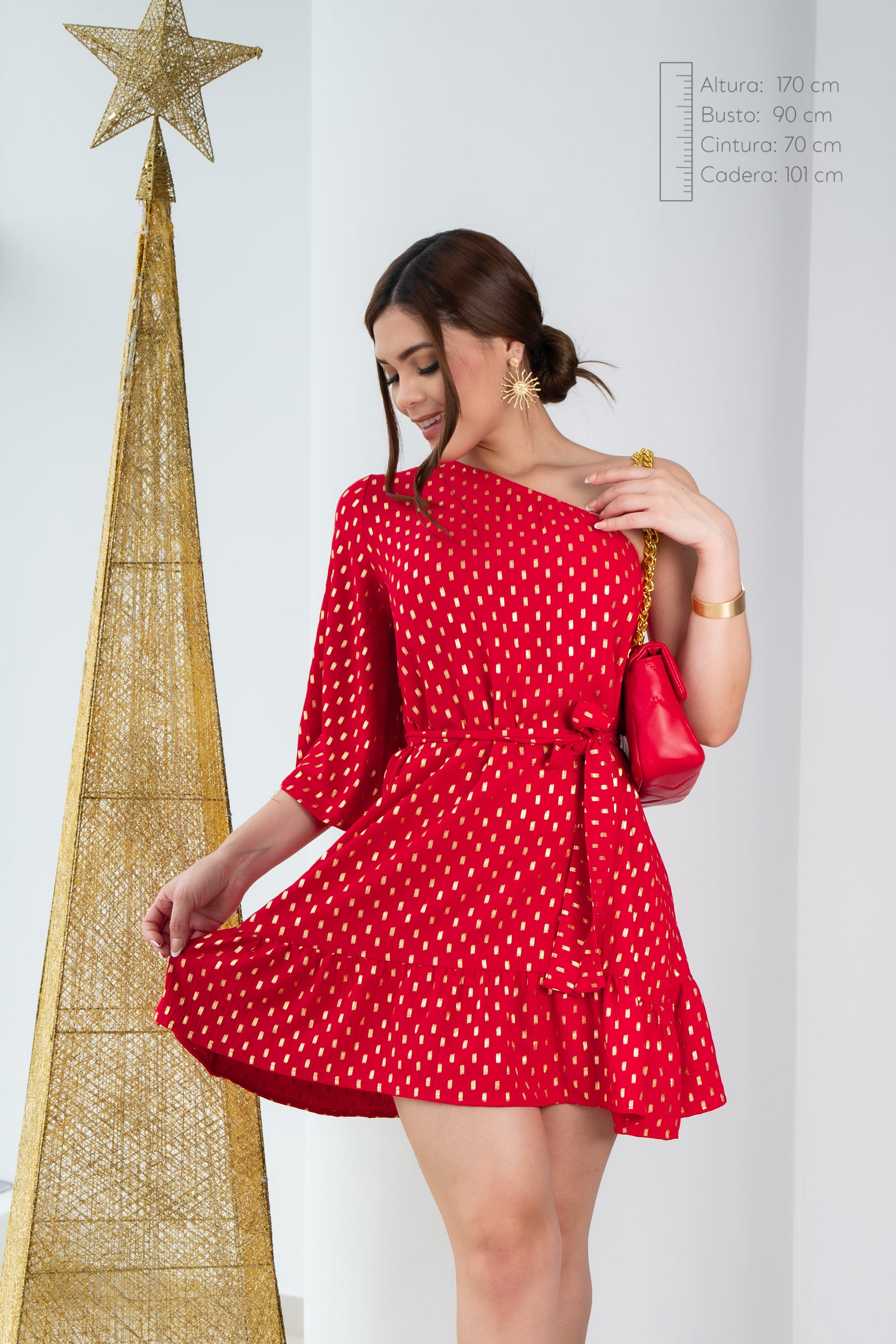 Vestido de diseño asimetrico con lazo regulable.